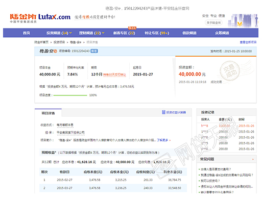 ¡¡¡¡Â½½ðËùÏîÄ¿ÓâÆÚ֪ͨ¶ÌÐŽØÍ¼ ¡¡¡¡ÉÏÊöͶ×ÊÈËÌṩµÄ·¢×Ô½½ðËùµÄ¶ÌÏûÏ¢ÏÔʾ£¬Â½½ðËù±àºÅΪ15012204243µÄÏîÄ¿ÊÕ¿îÓâÆÚ£¬²¢³Æ¡°µ£±£¹«Ë¾½«¶Ô´û¿îÈ˽øÐдßÊÕ£¬½è¿îÈ˽«Ö§¸¶ÄúÒ»¶¨µÄÓâÆÚ·£Ï¢¡£¡± ¡¡¡¡ÖйúÍø²Æ¾¼ÇÕßÔÚ½½ðËù¹ÙÍø·¢ÏÖ£¬±àºÅΪ15012204243µÄÏîÄ¿´ÓÊôÓÚ½½ðËùÃ÷ÐÇÏîÄ¿¡°ÎÈÓ¯-°²e¡±¡£¸ÃÏîÄ¿±¾½ð40000Ôª£¬Ä껯ÊÕÒæÂÊ7.84%£¬½è¿îÆÚÏÞ12¸öÔ£¬ÒÑÓÚ2015Äê1ÔÂ26ÈÕ½»Ò׳ɹ¦£¬´ÎÈÕ¿ªÊ¼¼ÆÏ¢¡£Ä¿Ç°¹ÙÍøÉÐδÏÔʾÓâÆÚÏûÏ¢£¬Ò²Î´·¢²¼Õýʽ¹«¸æ¡£